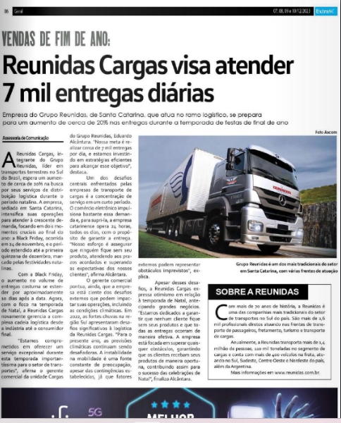 Vendas de fim de ano: Reunidas Cargas visa atender 7 mil entregas diárias