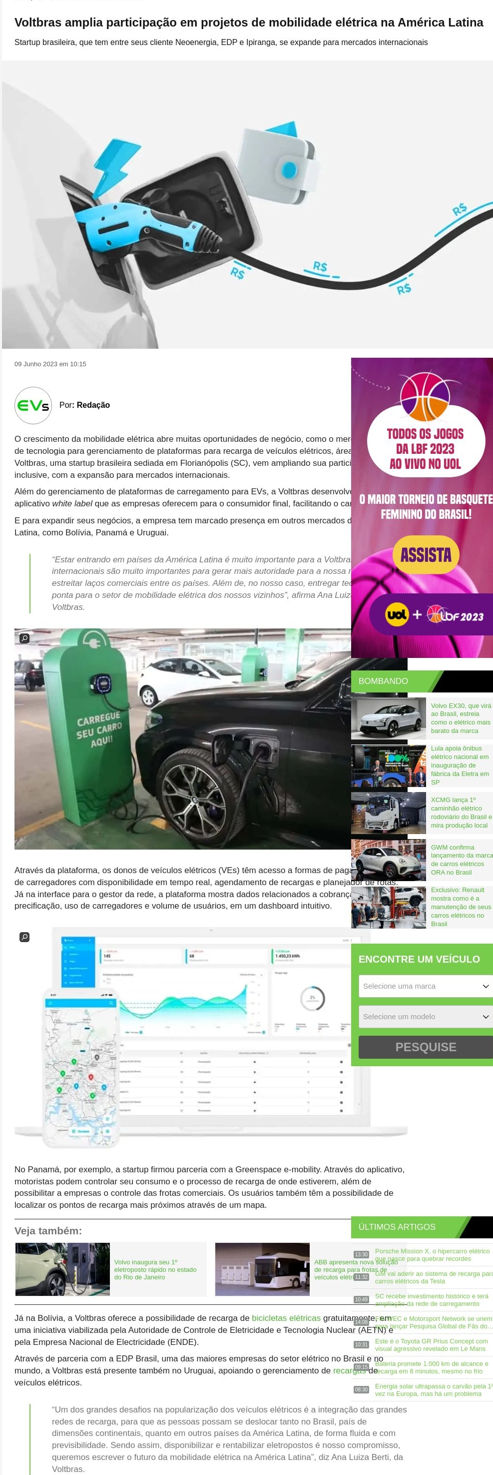 Voltbras amplia participação em projetos de mobilidade elétrica na América Latina