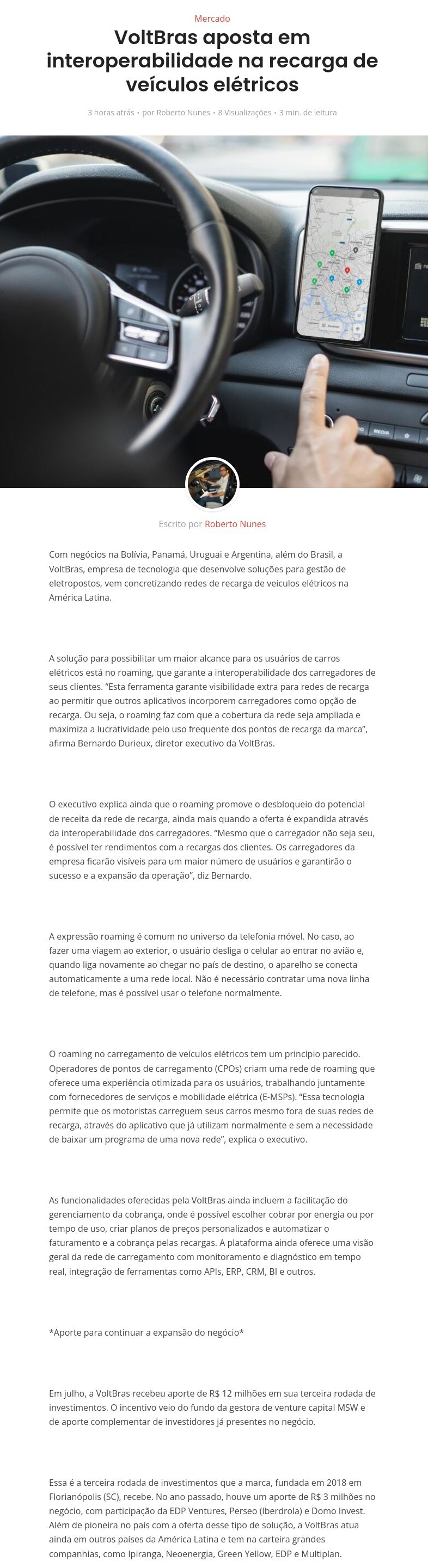 VoltBras aposta em interoperabilidade na recarga de veículos elétricos - Autos&Motos