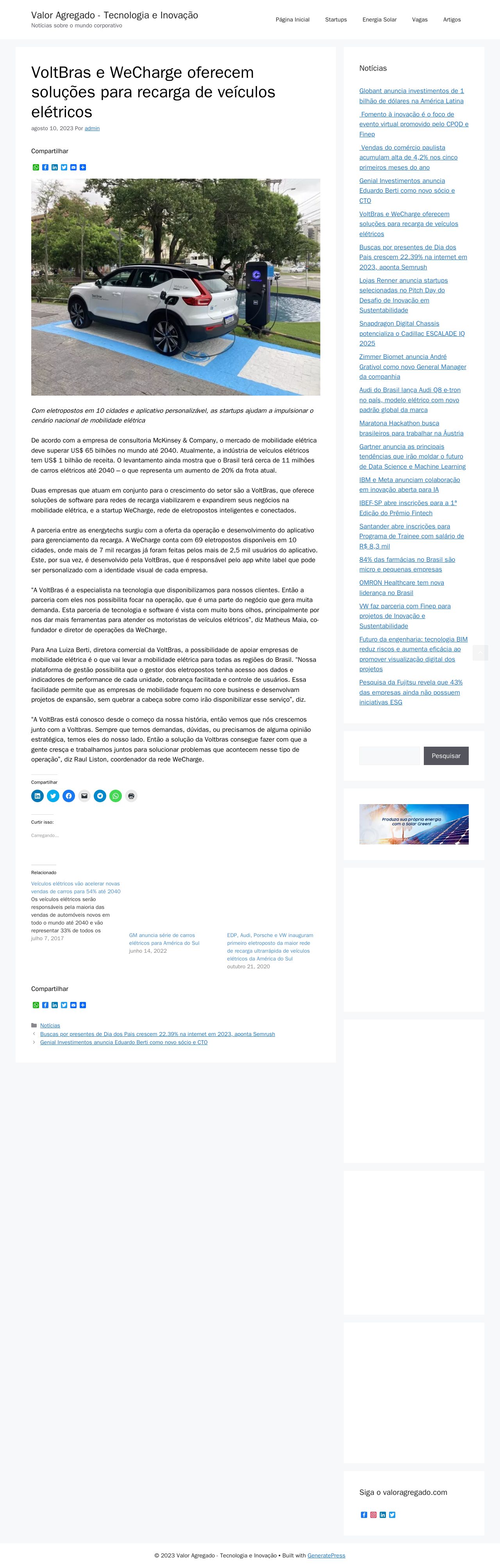 VoltBras e WeCharge oferecem soluções para recarga de veículos elétricos - Valor Agregado - Tecnologia e Inovação