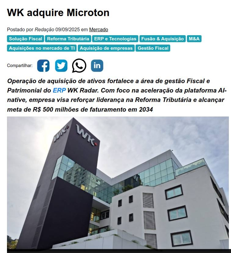 WK adquire Microton e anuncia investimentos de mais de R$ 20 milhões em tecnologia