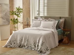 A coleção reúne itens reformulados, agora com novas cores e estampas, e uma série de lançamentos que ampliam o portfólio da marca. Jogos de cama 100% algodão, percal 300 fios, microfibras de toque macio, rendas em algodão e bordados delicados aparecem como elementos centrais, criando peças que valorizam o sensorial, o visual e a durabilidade.